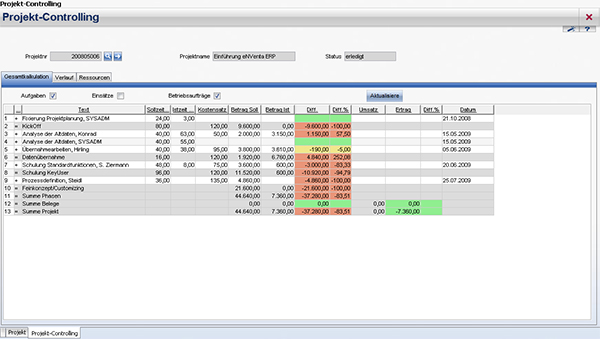 Das integrierte Projektmanagement von eNVenta ERP bietet Ihnen vielfältige Möglichkeiten der Steuerung und Zielkontrolle überall dort, wo Ihre Mitarbeiter projektbezogen arbeiten. Es unterstützt Sie dabei, Ihre Pläne zu erfüllen und die Kundenzufriedenheit zu steigern. Die zu einem Projekt gehörenden Aufgaben, Termine und Dokumente lassen sich mühelos verwalten. Und das Budget ist jederzeit im Blick. Für Durchblick sorgt außerdem der Projektleitstand mit der Visualisierung der einzelnen Projektphasen und des Grades der Zielerreichung. Mit der Definition von Phasen und Aufgaben strukturieren Sie den Projektverlauf und definieren den Weg zum Ziel. Während des laufenden Projekts dient das Projektmanagement der Leistungserfassung und der Überwachung des Erfüllungsgrads, der benötigten Zeiten und der aufgelaufenen Kosten. Eine ToDo-Liste gewährt allen Projektbeteiligten jederzeit einen aktuellen Einblick in den Stand der Bearbeitung. Zentrale Informationen sind schnell abrufbar. So kann der Projektleiter bei internen oder externen Nachfragen über den Projektfortschritt jederzeit und kompetent Auskunft geben.